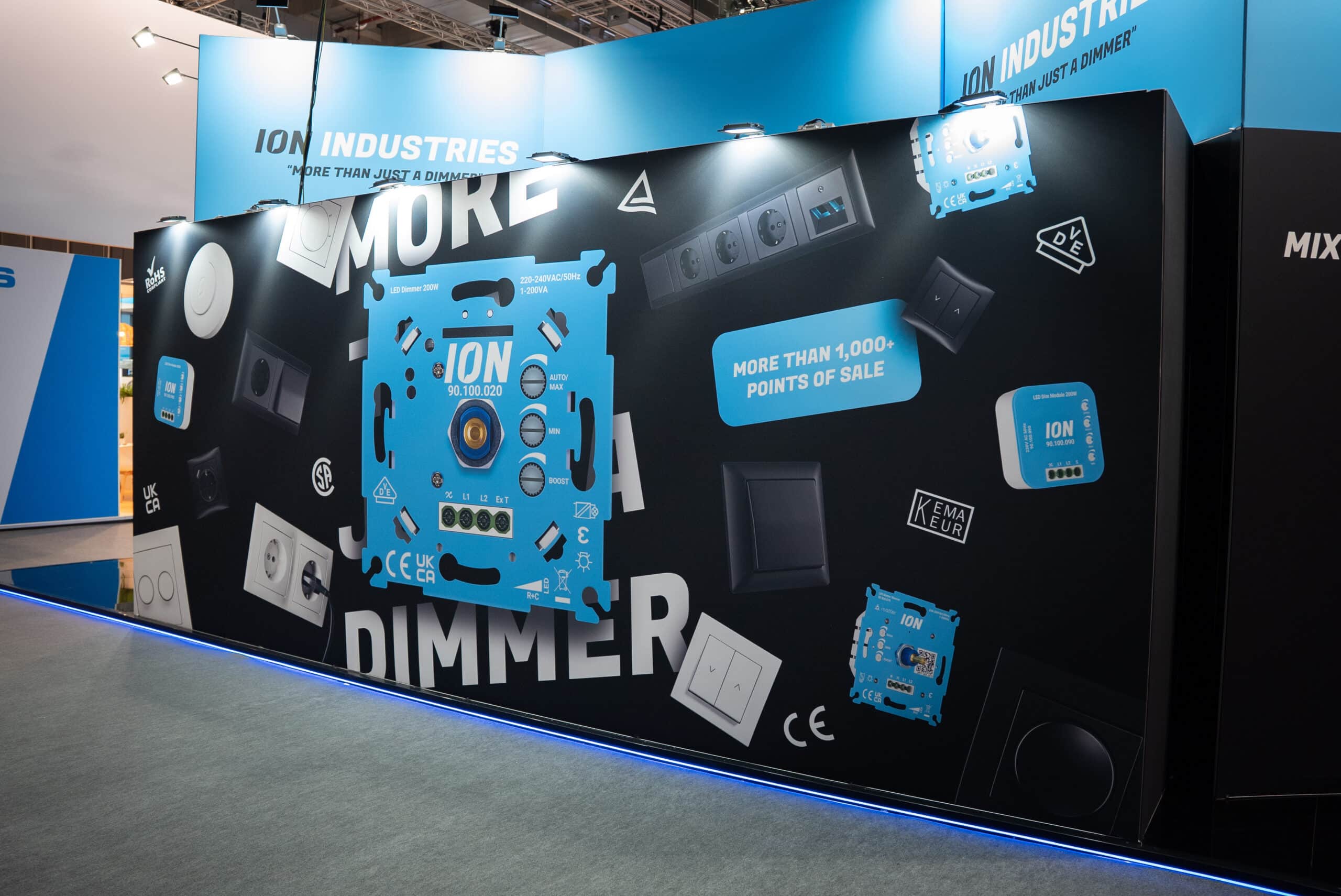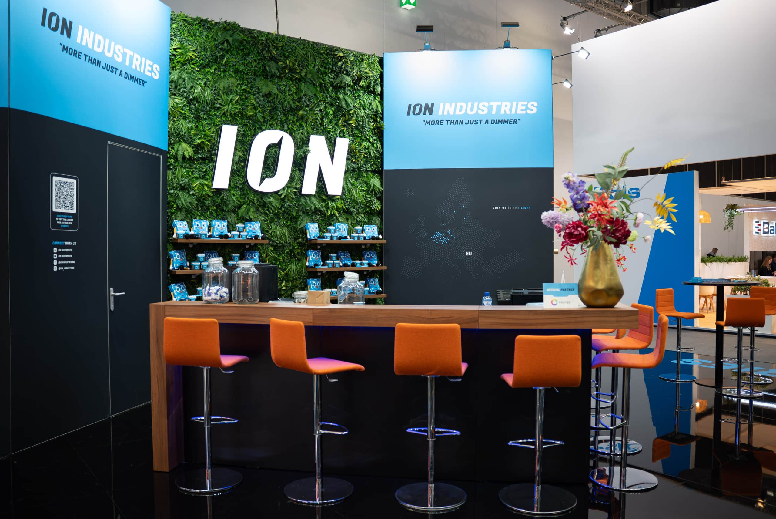 Voor Ion Industries, specialist in hoogwaardige schakelaars, dimmers en slimme bedieningsoplossingen, realiseerden wij opnieuw de beursstand. We werken inmiddels al meerdere nationale en internationale beurzen samen en bouwden eerder onder andere voor hen op de VSK én een eerdere editie van Light + Building. De samenwerking is hecht en vertrouwd we kennen het merk, de producten en de ambities.