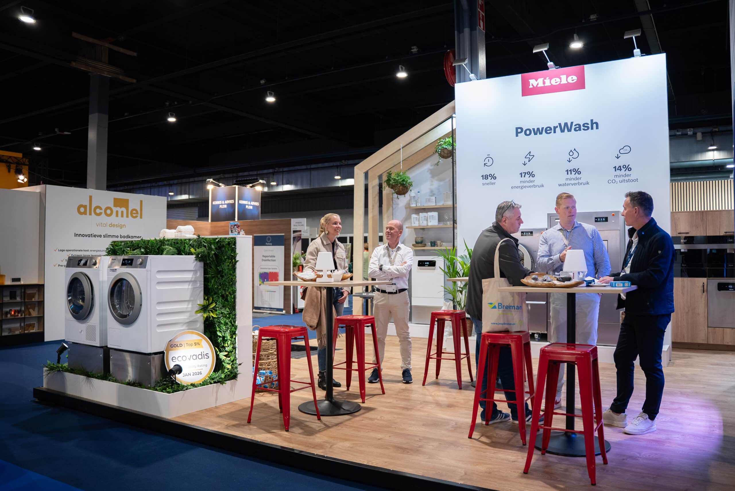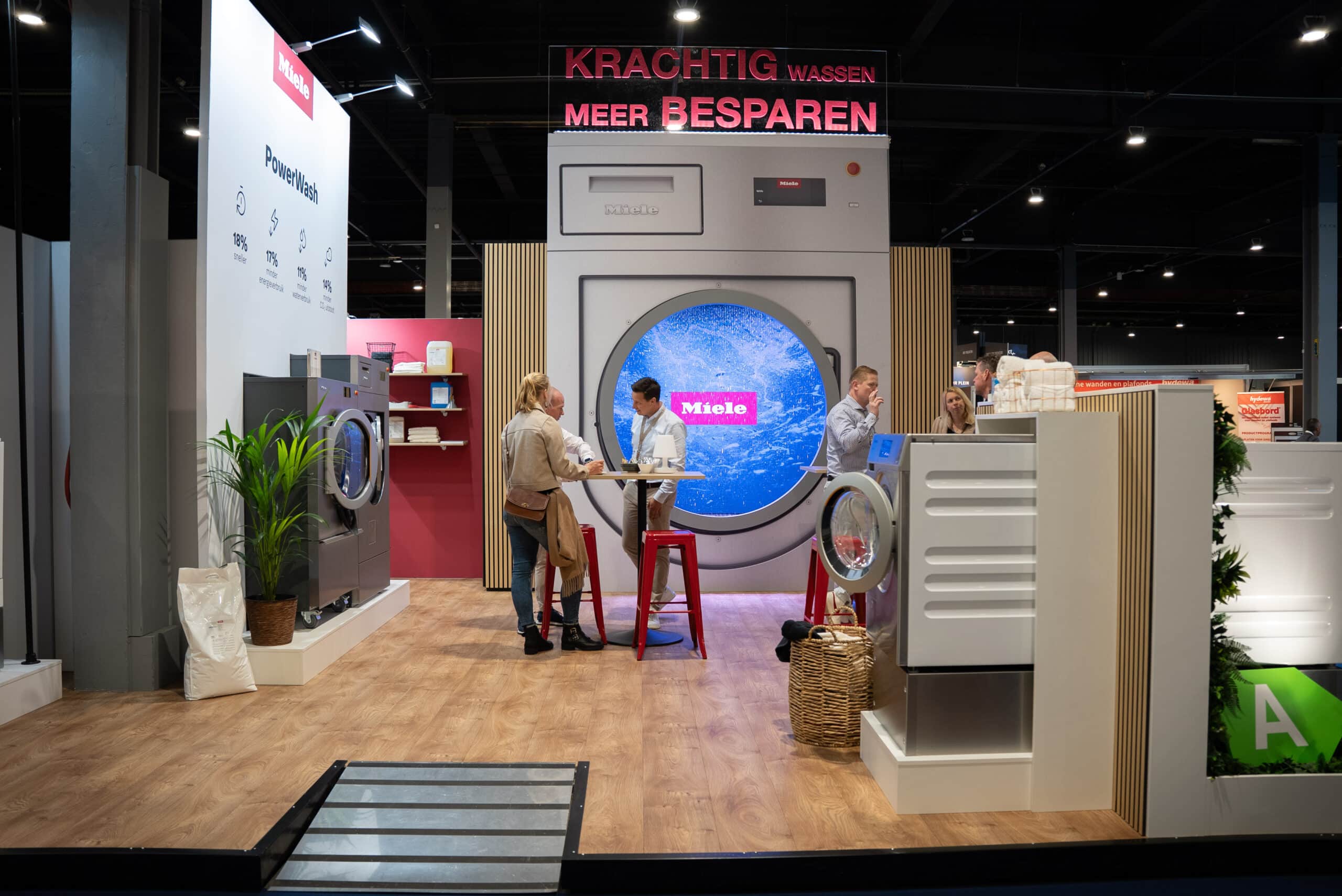 Voor Miele realiseerden we een beursstand op de Zorg & Facility beurs in de Jaarbeurs Utrecht. De stand stond in het teken van innovatie en productintroductie, met als centraal moment de lancering van Miele PowerWash binnen Miele Professional.
