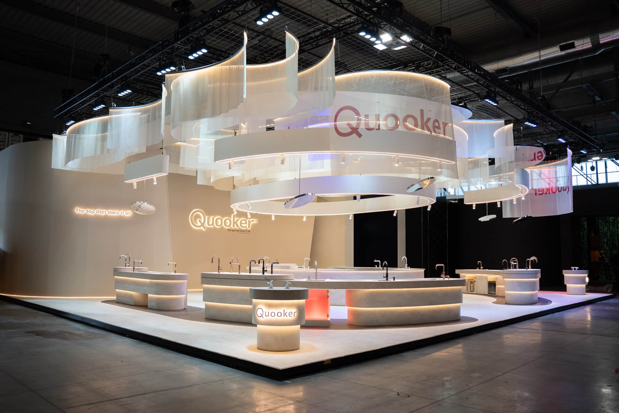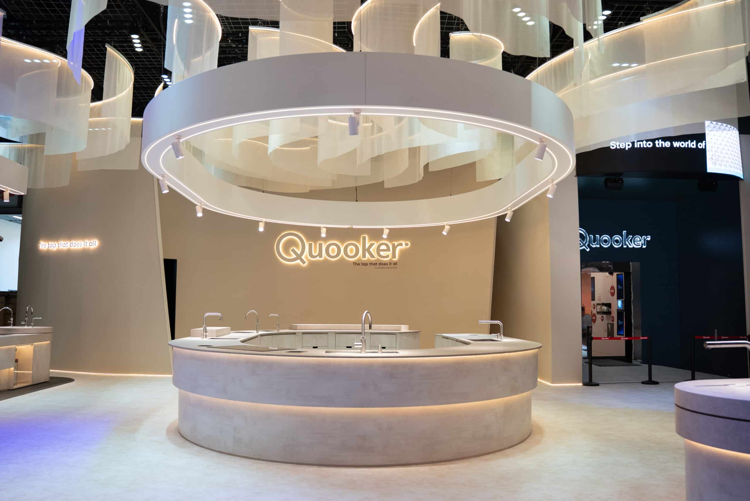 De ambitie was helder: Quooker positioneren als een innovatief design- en appliance merk, niet als ‘de kraan’. De stand moest inspireren, verrassen en vooral laten voelen wat Quooker toevoegt aan het dagelijks leven.